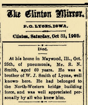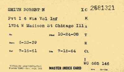 *Robert Nelson Smith (21 Aug 1839 - 24 Oct 1908), a native of VT. From Wheatland, De Soto, WI, he enlisted 16 July 1861 with 6th Wisconsin Infantry. He was mustered out 15 July 1864.