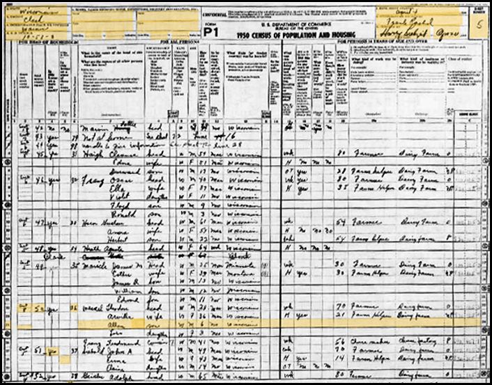 1950 Federal Census, Warner, Clark County, Wisconsin, 4 Apr 1950, Supervisor District: 10-53