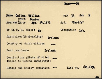 William Callon, Wausau, was born in County Armagh, Ireland, Feb. 24, 1833, and