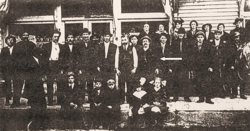 William Preuss and associates in Edgar, Wisconsin (ca.1915) Ben Straub Photo, Edgar, Wis. The Photo above was taken about 1915, taken in front of H. Pelatzke Northwestern Hotel (Now Shimmels Tavern). L to R. Front row: Walter Kratowhil, Mel Zimmerman, unknown, Shimmel Pelatzke, Baumgard girl and Helen Pelatzke Straub. 2nd row: Nick Syzmanski, Arnsdorf, unknown, Wm. J. Hannaman, Herman Pelatzke, Isador Bach, Mr. Baumgard, Louis Lindberg, Mike Halkowitz, Wm. Preuss, Unknown, Hy. Baeseman, Tony Hannaman, Gust Hannaman and Wm. Fandre. Last row: Mrs. Baumgard, Mrs. Celia Pelatzke, Lucy Pelatzke Kratowhil, Emma Hannaman, Mary Pospychalla, Unknown and a Mr. Schroeder. 3-6-67. |