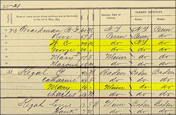 neighbors to the Boardmans on the 1875 Olmsted County, Minnesota census. They