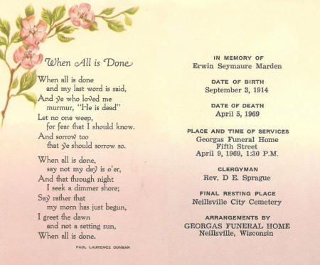 Funeral services for Erwin S. Marden, 54, of Neillsville, who died here