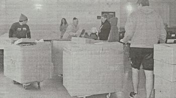 to distribute to customers. Thrisha Bushman (far back) called out numbers of