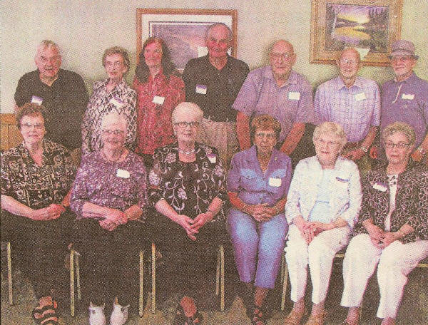 The Greenwood High School Class of 1950 held its 65-year reunion on June 27, 2015 at the Hayloft in Withee (Clark Co., Wis.). Class members attending were (front from left): Bernelda (Noah) Karlen, Jo Ann (Kitzhaber) Suda, Joyce (Tieman) Washburn, Mabel (Martens) Kruger, Donna (Baird) Larson, Dottie (Reineking) Vollrath, (Back) Harold Miller, Beverly (Carteron) Spangler, Virginia (Ampe) Nowak, Darrel Horn, Lloyd Horn, Gerald Horn, and George Plunkett. |