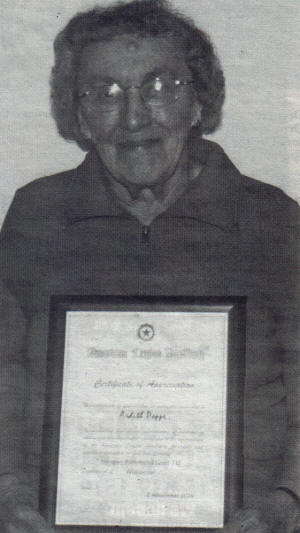 Legion Ladies Auxiliary meeting for all her years of volunteer service.