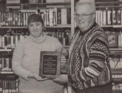 Neillsville Public Library Board President Jerry Quicker presents Jo Ann
