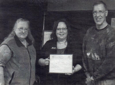 Janet Seymour (center) presents a certificate to president Charlotte Tetzlaff
