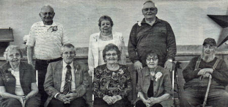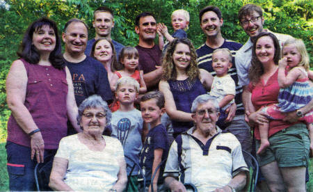 Bernie and Hanna Opelt (seated, second and third from left) pose at the