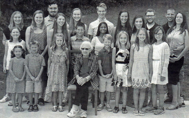 five grandchildren and 18 great-grandchildren, all of whom were present at the