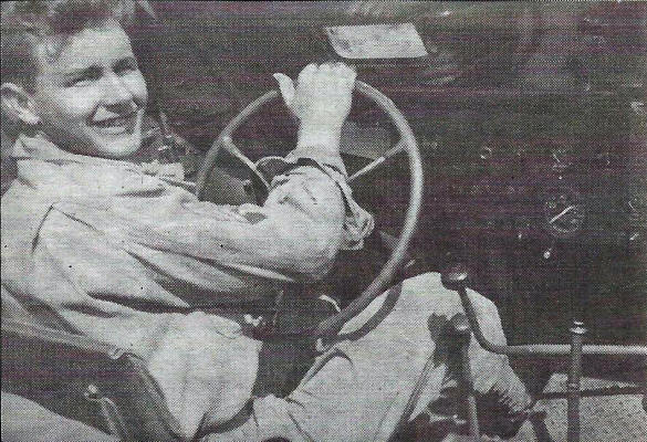 Bruce Spiegel is shown at the wheel of a half-track unit during his stint in the