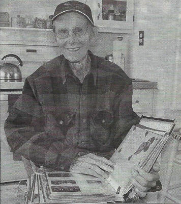 Bruce Spiegel, 94, of the Town of Washburn, displays a thick photo album Friday