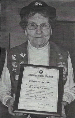 Neillsville American Legion Post 73, the Ladies Auxiliary Recognized Rosemary