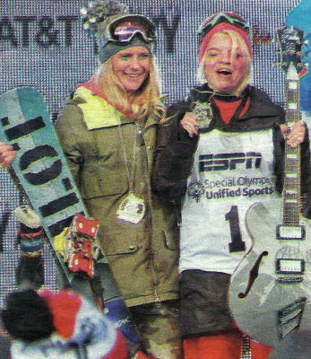 Daina and her snowboarding idol and unified dual slalom partner Hannah Teter did