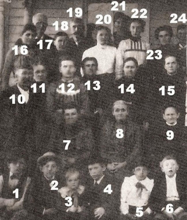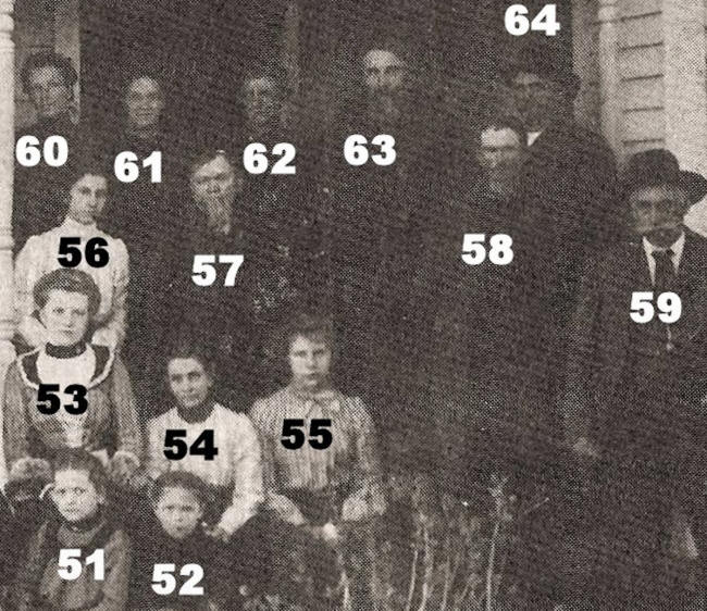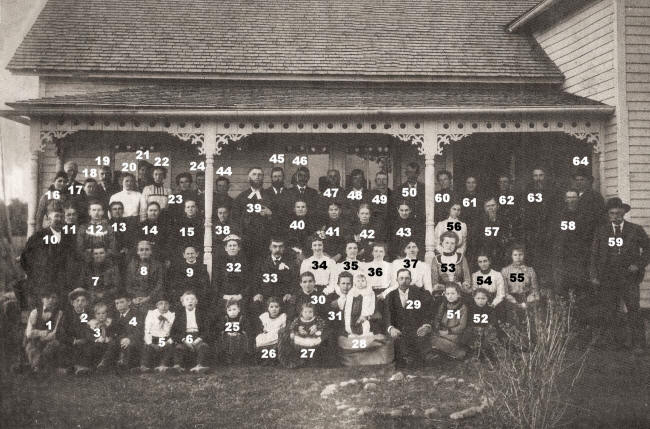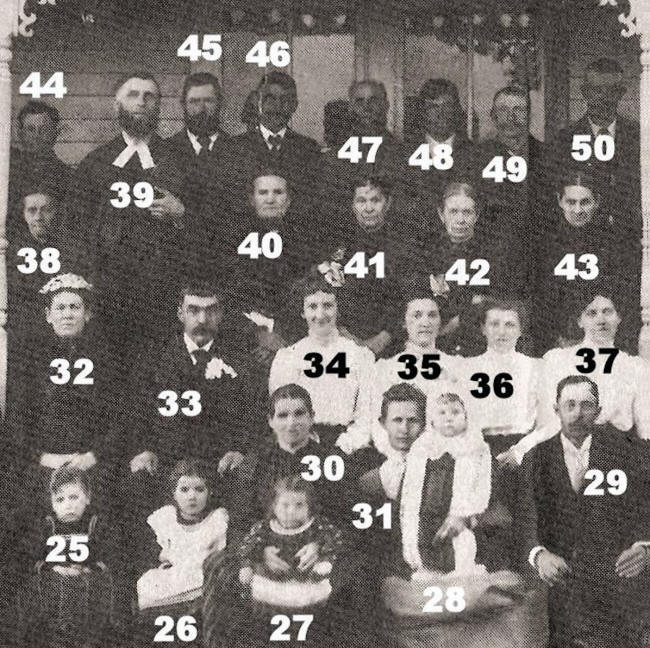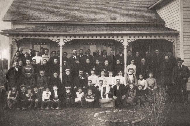This early picture was taken at the Karl Ratzburg farm. This was the home in later year of the L.G. and Luella Anderson family on Rueth Road. The Ratzburgs are seated directly in front of Pastor Reul, who came to Loyal in 1890. They are grandparents of Elmer Ratzburg of Loyal. A Haslow family is pictured in the rist row holding a baby. Ironically the house has been remodeled, but the little bush in the foreground and the windmill to the left are still present. Known anyone else in the picture? We'd like to hear from you.