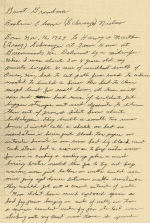 home at Greenwood (Clark Co.), Wisconsin. Delivered by a midwife.