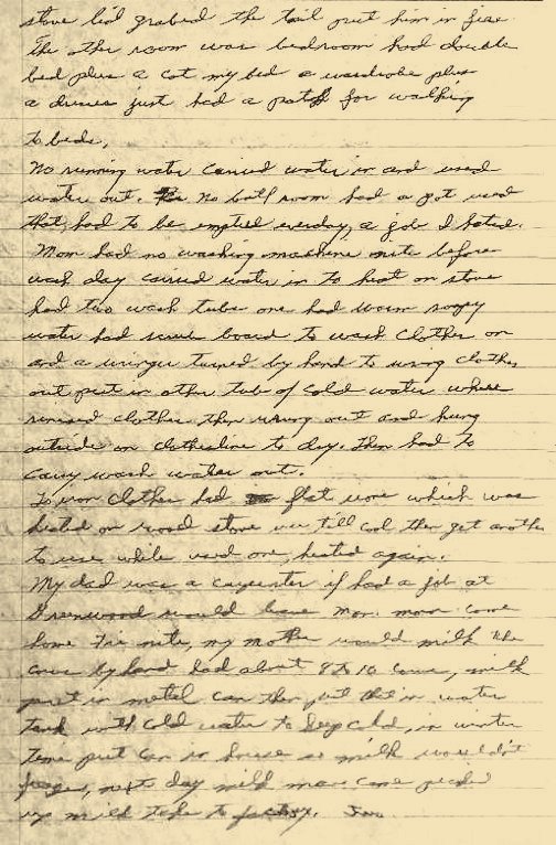 soapy water. We had a scrub board to wash clothes, and a wringer