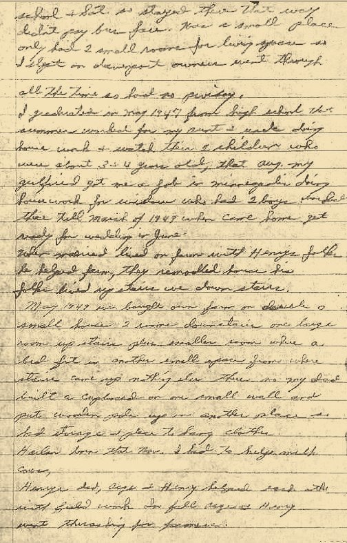 I graduated in May 1947 from high school. That summer worked for my