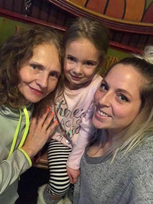 Dawn Johnson, 50, Hillary Harris, 31, pose with Harris' daughter, Stella, 5.