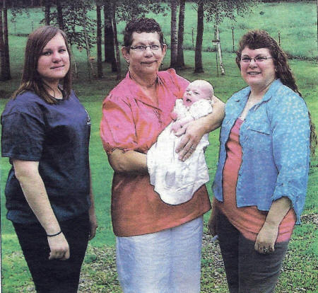 Four Generations: (l-r) Lacey Murphy (mom), Lana Ormond (great-grandma) holding