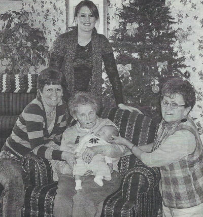 holding her great-great-granddaughter Brynnlee Deisinger. Surrounding them (l-r)