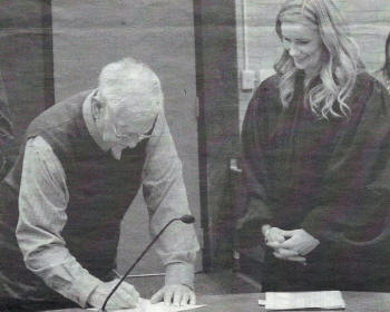 Clark County Coroner Richard Schleifer signs the oath of office after it was