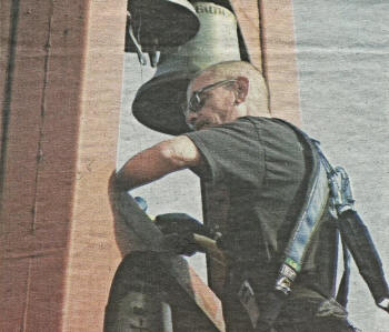 Jeff Mann loosens on of the 15 bell clappers as he and another Verdin employee