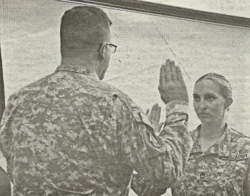 Sgt. 1st Class Christina is “pinned” with Second lieutenant rank by Capt. David