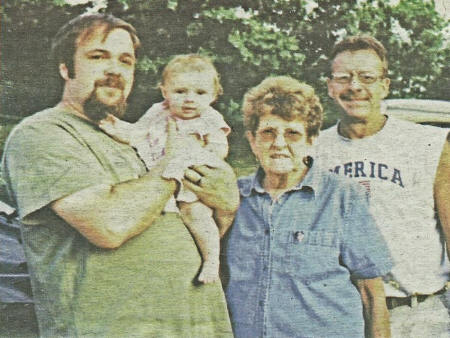(l-r) are father, Joe Cernik, with daughter, Isabella; great-grandmother, Velva