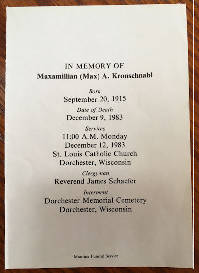 Kronschnabl, Maxamillian "Max" A. (20 SEP 1915 - 9 DEC 1983)