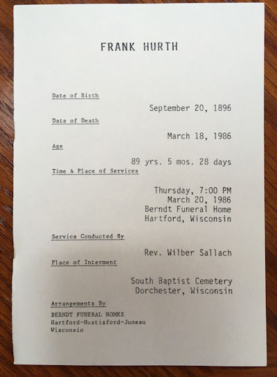 Hurth, Frank (20 SEP 1896 - 18 MAR 1986)