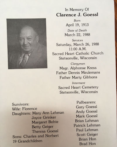 Obit: Goessl, Clarence J. (1913 - 1988)