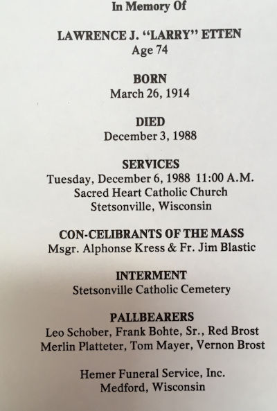 Obit: Etten, Lawrence J. "Larry" ( 1914 - 1988)