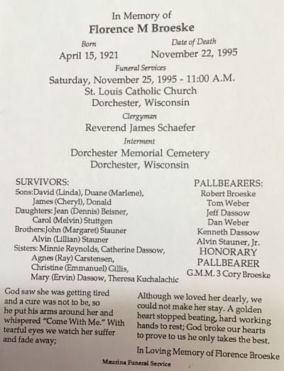 Broeseke, Florence M. (15 APR 1921 - 22 NOV 1995)