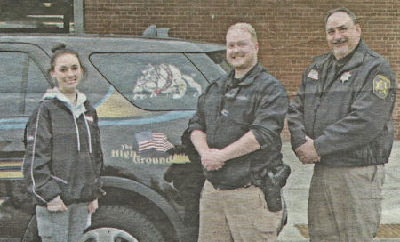 resource officer Dylan Baxter (middle) and Sheriff Scott Haines (right) for