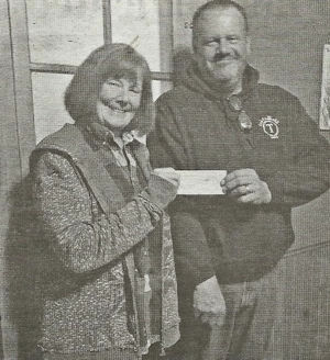 Search and Rescue. Above, club treasurer Linda Miller presents a check to Rob