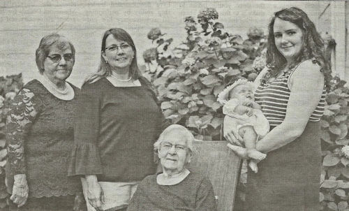 in May. Doehr (seated) is shown with (standing l to r) Lou Ann (Doehr) Lang,