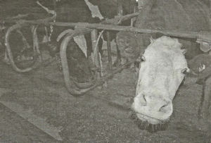 Friendly dairy cow Ruby (r) is there to greet those who enter the barn at Taygin’