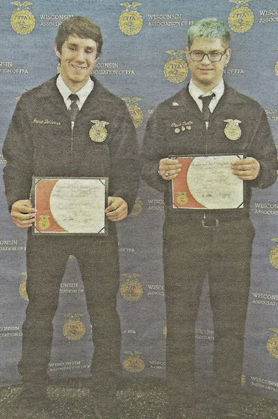 Isaac Balderas (l) and Chase Curtin of the Neillsville FFA each received their