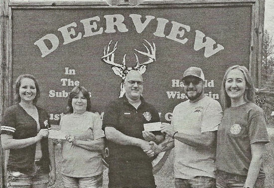 Joe Gaier received $1,000 for the Hatfield Fireworks from Lori Bixby of Deer