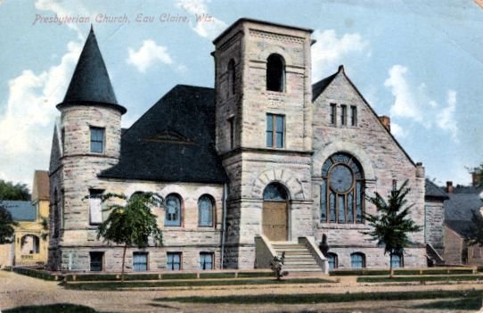 Presbyterian Church, Eau Claire, WI (postcard in the collection of Kittie Hein)