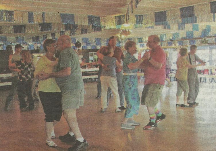 front left, Audrey Larson of Greenwood and Dick Kortheim of Medford enjoy a