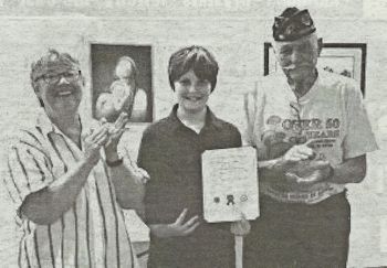 Post 320 member Howard Rennhack (r) presented 12-year-olf Hunter Hardwick with