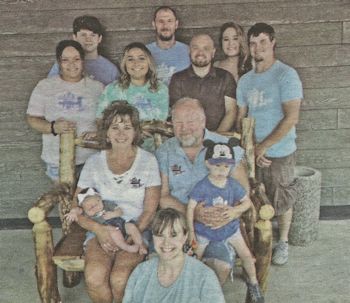 family members. Shown are (front) Savanna Backum, (2nd row) Bunny holding Grace