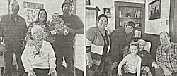 left photo is Joyce (seated) with her son Dennis Schultz, (back, l), Dennis’