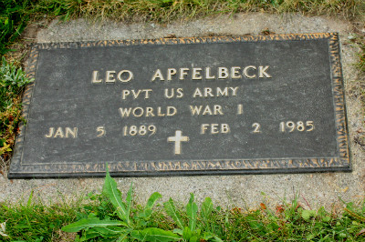 | tms | Apfelbeck, Leo; #2 | 5 Jan 1889 | 1 Feb 1985 | WWI-Pvt US Army | Hildagard Ohlinger | 9 Jul 1919 | |