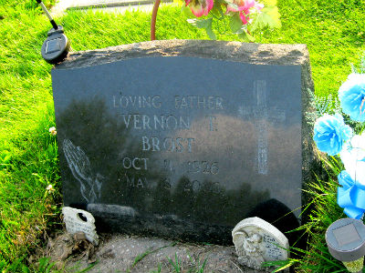 | to | Brost, Vernon T. | 11 Oct 1926 | 8 May 2005 | Dorlinda Schaefer | 26 May 1955 | Leo & Elsie (Schultz) Brost | |