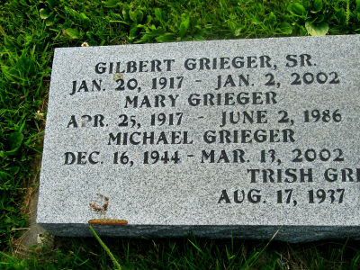 | t | Grieger, Michael | 16 Dec 1944 | 13 Mar 2002 | Gilbert Sr. & Mary (Blake) Grieger | |||