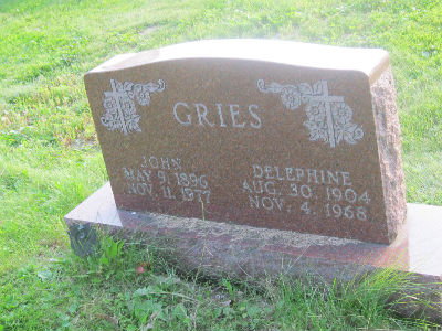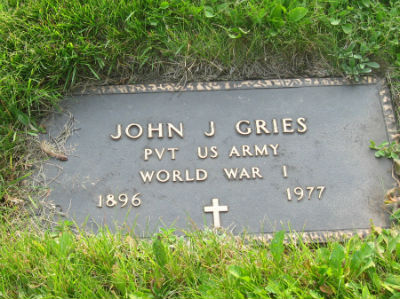 | tm | Gries, John J.; #2 | 9 May 1896 | 11 Nov 1977 | WWI-Pvt US Army | Delephine Weix | 21-Jun-1926 | Peter A. Sr. & ? Weix |