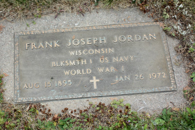 | tf | Jordan, Frank Joseph; #2 | 15 Aug 1895 | 26 Jan 1972 | WWI-Blksmth 1 US Navy | Cecelia | Joseph & Margaret (Demmer) Jordan | |