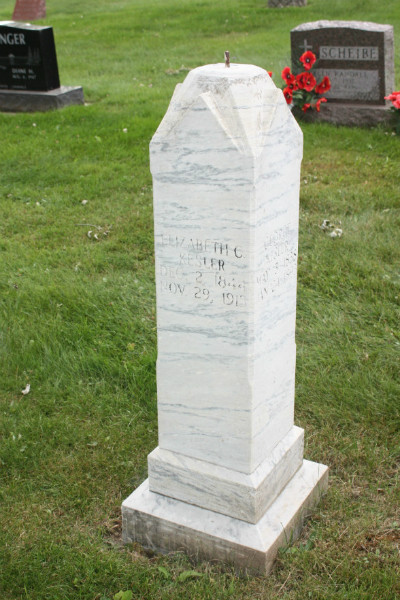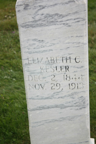 | to | Kesler, Elizabeth C.; #2 | 22 Dec 1844 | 29 Nov 1913 | George Kesler | 11 Jul 1866 | Engeldinger | |